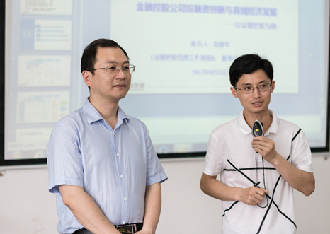 6月22日,应经济学院邀请,中国保监会和清华大学金融学博士后、四川金鼎产融控股有限公司赵建军到我校做了题为《金融控股公司投融资创新与县域经济发展——以金鼎控股为例》的学术报告,报告由王玉峰副教授主持,我院投资学专业学生及部分教师参加了该报告。
