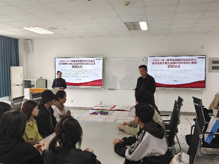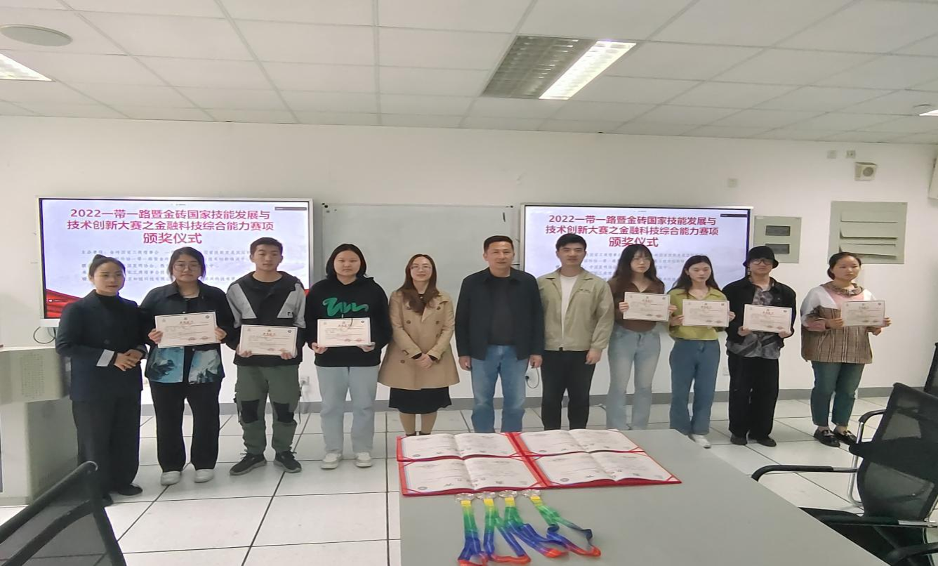 2023年4月4日,“2022一带一路暨金砖国家技能发展与技术创新大赛”之金融科技综合能力赛项tyc41183太阳成集团学颁奖仪式在成都校区4-C409举行。经济学院副院长吴平教授、金融学副系主任刘艳副教授及指导教师代表徐斌博士出席,颁奖仪式由比赛技术支持方北京知链科技有限公司项目经理陈浚瑶主持。