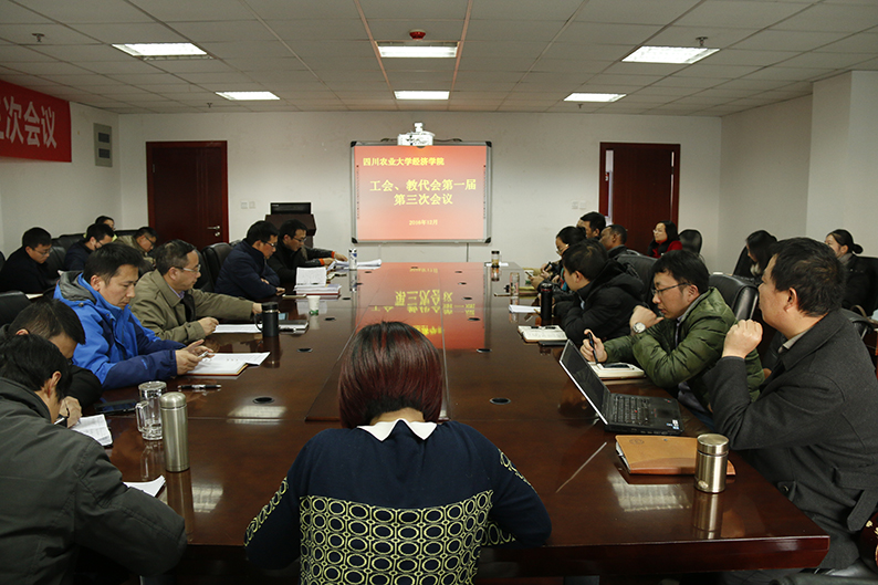 12月27日,经济学院在一教405会议室召开第一届工会、教代会第三次会议,学院全体教职工参会,学院党委副书记何仁辉主持会议。