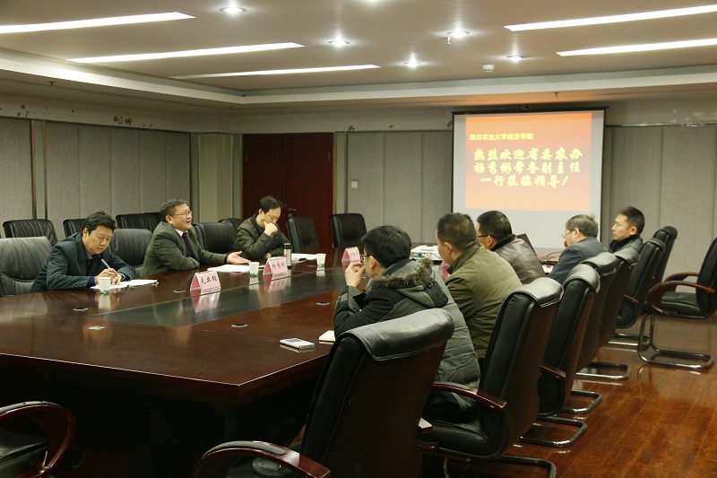 2017年1月11日下午,中共四川省委农村工作委员会常务副主任杨秀彬率领省委农工委副主任毛业雄、省农委政策法规研究处处长王晓勇一行莅临经济学院指导工作并与师生进行了深入交流座谈。经济学院全体院领导班子以及部分教师和研究生代表参会。座谈会由院长蒋远胜教授主持。