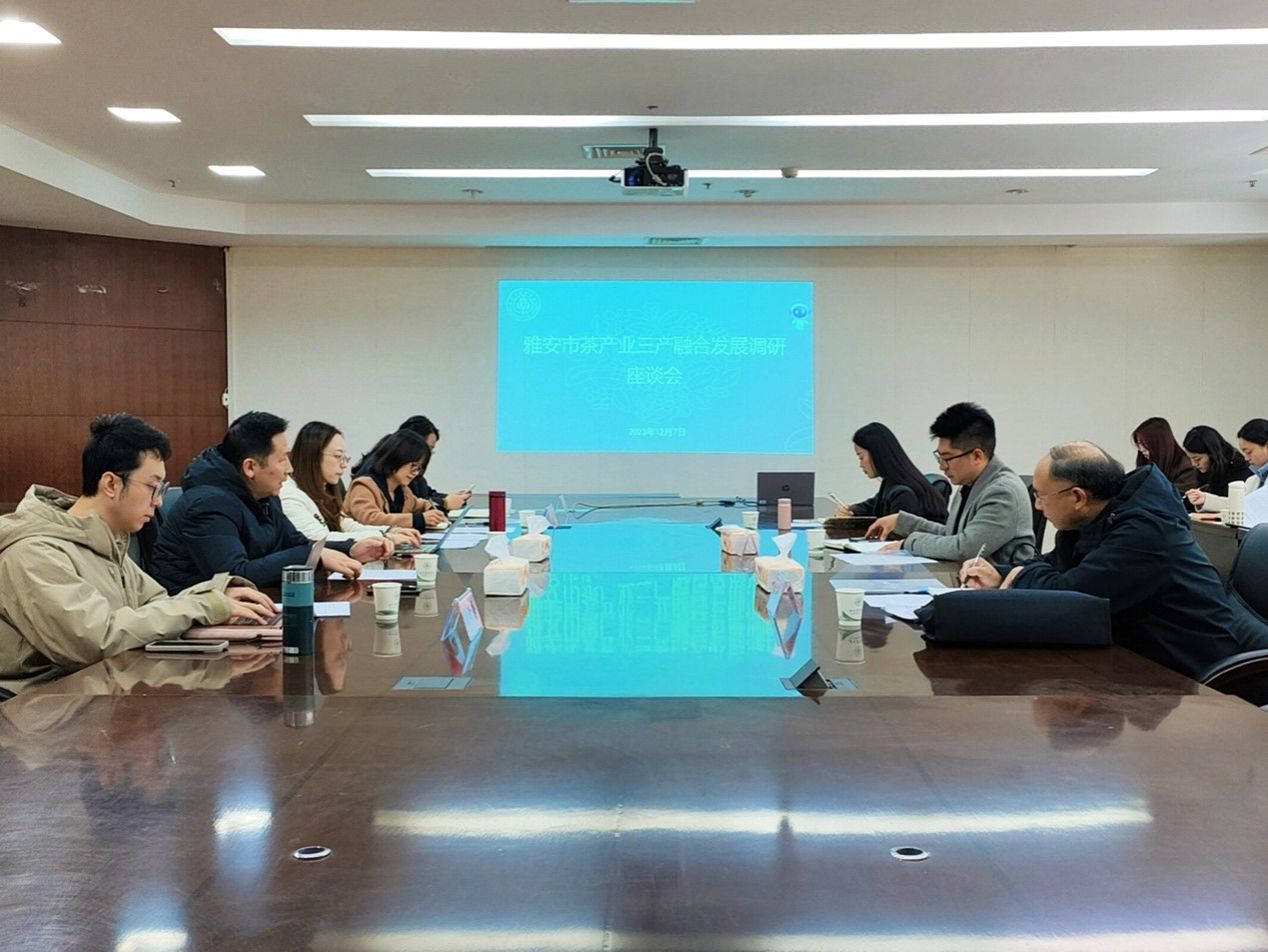 上午,雅安市茶产业三产融合发展调研座谈会在我校雅安校区综合楼414举行。雅安茶产业发展中心四级调研员陈开义,四川雅茶集团茶业有限公司党支部书记、董事长马兴旺,我校新农村发展研究院服务总站综合部部长何红梅,新农村发展研究院服务总站茶叶产业部助理兰岚出席座谈会。