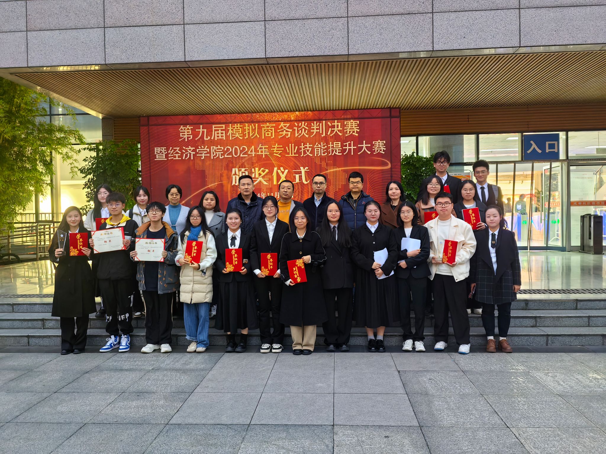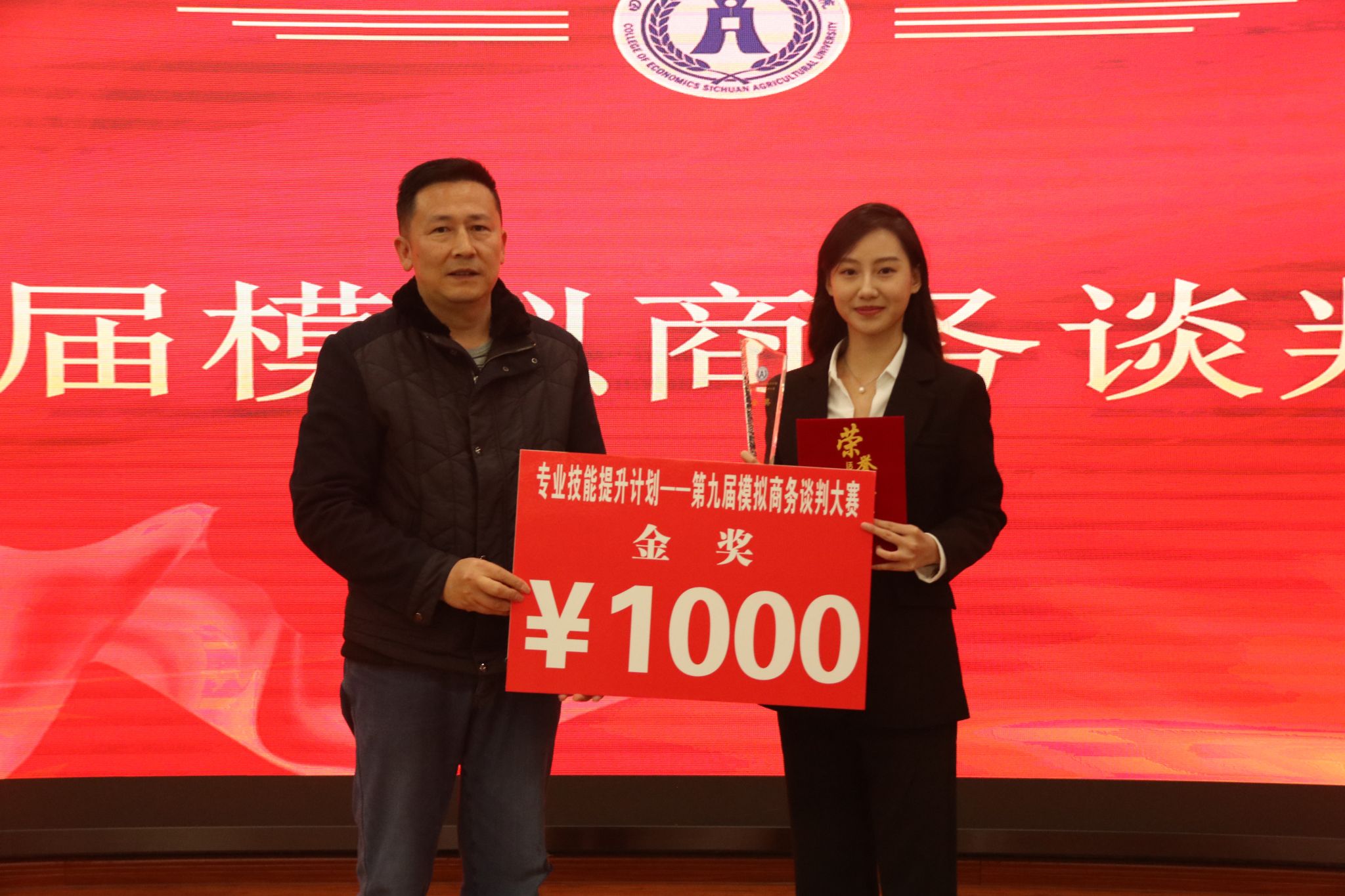 11月19日下午,在成都校区图书馆报告厅内一群职业经理人着装的川农学子,开展了一场围绕“国际贸易”的激烈商务谈判。伴随tyc41183太阳成集团学第九届模拟商务谈判大赛冠亚军的诞生,经济学院2024年专业技能提升大赛全部落下帷幕。9月至11月,学院推出了以首席经济分析师模拟大赛、商业银行模拟经营大赛、模拟商务谈判大赛等为矩阵的专业技能比赛。学院副院长吴平教授、党委副书记张翅出席了随后举行的经济学院2024年专业技能大赛颁奖仪式,学院相关系室负责人和师生代表200余人参加仪式。