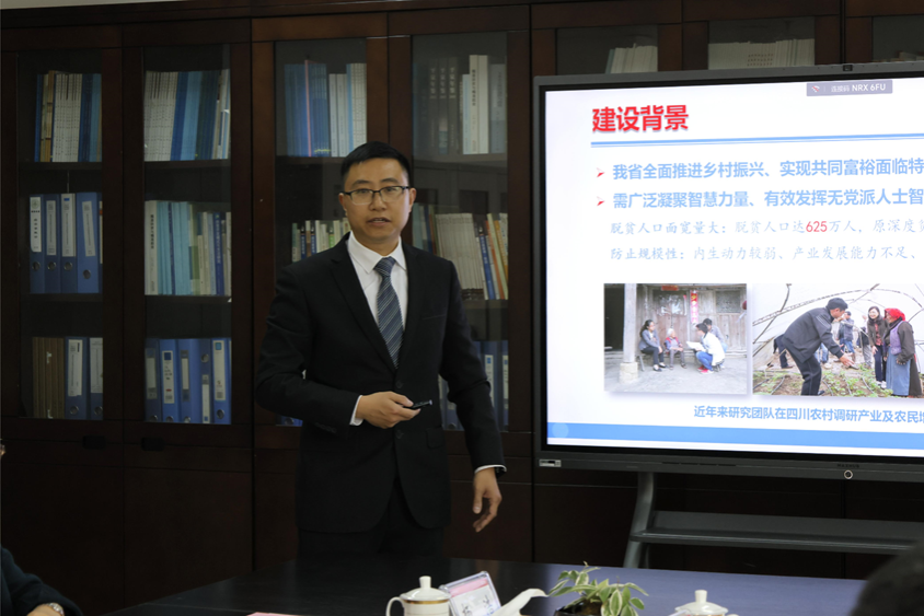 杨浩汇报了工作室的建设背景、基本概况、已取得的成效和下一步工作计划。他表示,将在今后的工作中牢记陈武书记嘱托,深入贯彻落实本次会议精神,继续一手抓学术科研,一手抓成果转化, 聚焦四川“三农”领域实践重大政策需求、服务于加快推进农业农村现代化建设、为我省民族地区巩固拓展脱贫攻坚成果、扎实推进共同富裕提供智力支持和人才支撑。