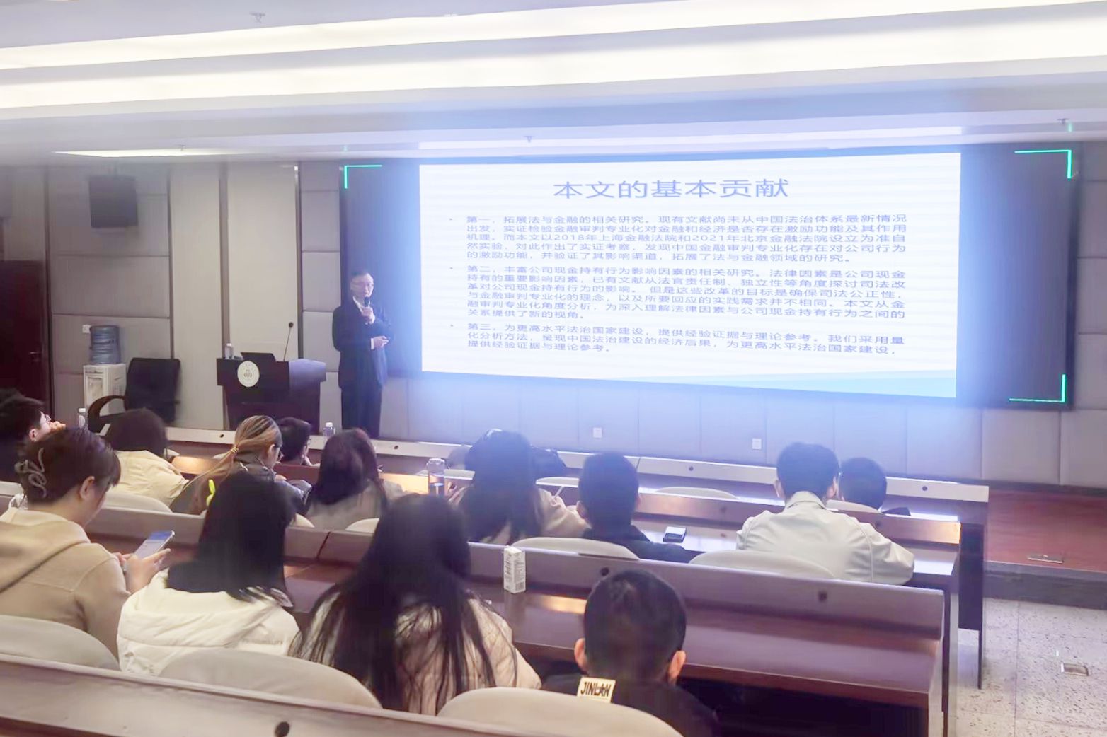 2025年3月12日上午,中国人民大学财政金融学院博士生导师、国务院政府特殊津贴获得者赵锡军教授应邀来到学院,作了一场题为“法治体系、融资约束与公司现金持有行为——基于金融法院的准自然实验”的学术讲座。讲座由学院院长曾维忠主持,吸引了我院近200名师生到场聆听。