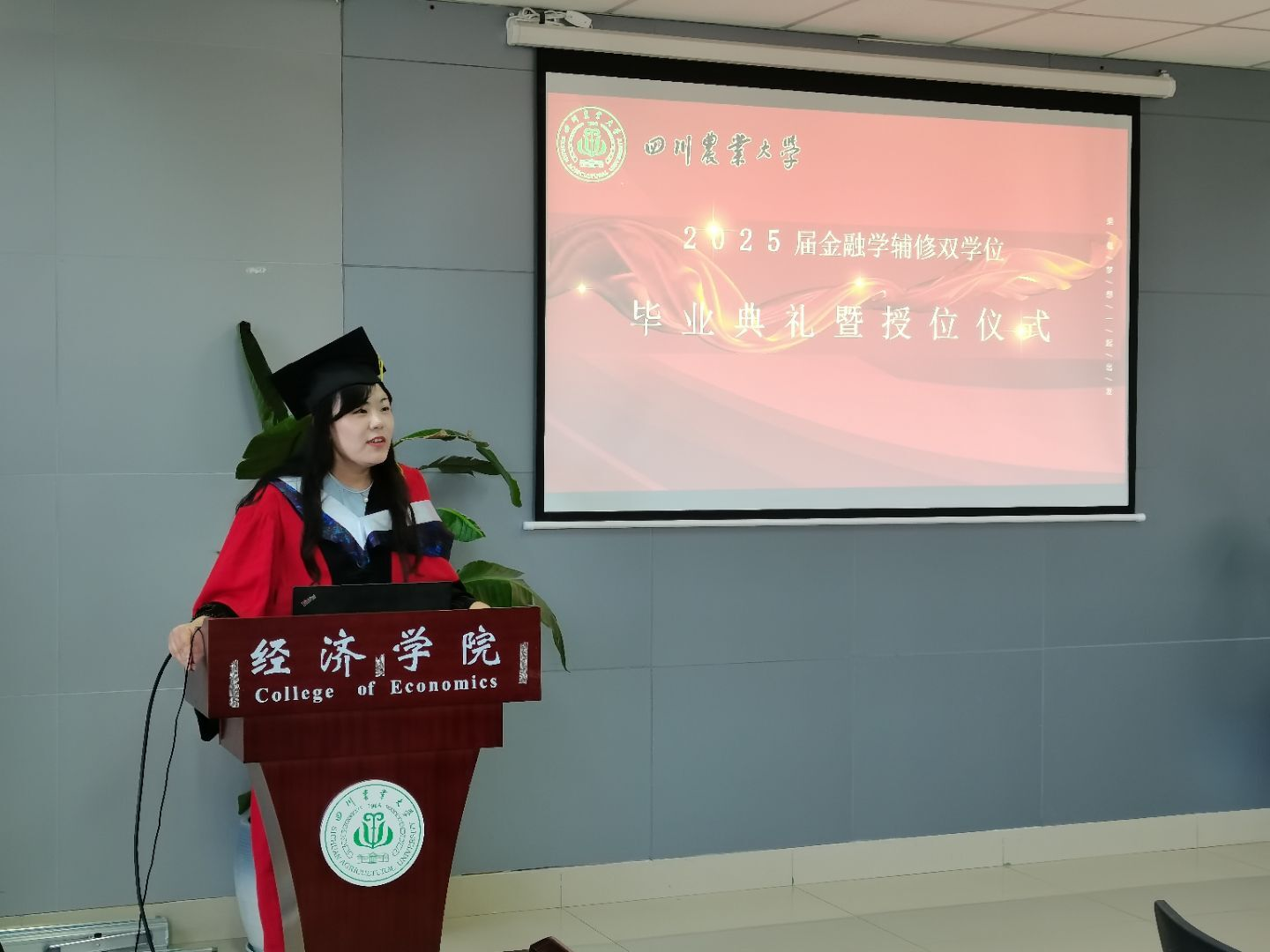 6月12日上午,学院于7教609举行了2025届金融学辅修学位毕业典礼暨授位仪式。学院党委书记刘思麟副教授、学院副院长吴平教授、金融学系主任臧敦刚教授、金融学系副系主任康明惠副教授、金融学系部分教师代表、2024届金融辅修学位毕业生代表出席。金融学系副系主任康明惠副教授主持了此次毕业典礼。