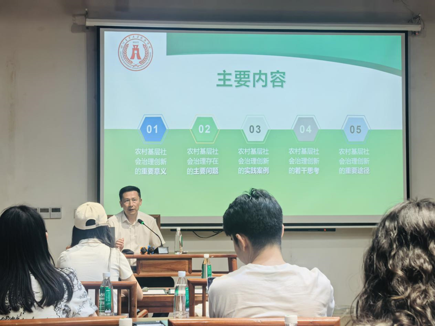 现场研学结束后,同学们来到东坡书院,吴平教授结合实例解析农村基层治理问题。眉山市农业农村部门相关负责同志随行授课,师生围绕农村集体用地管理、高标准农田建设、闲置土地盘活及农业人才培养等议题,进行深入交流研讨。