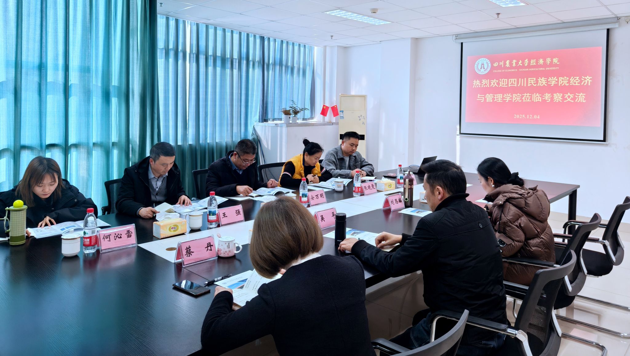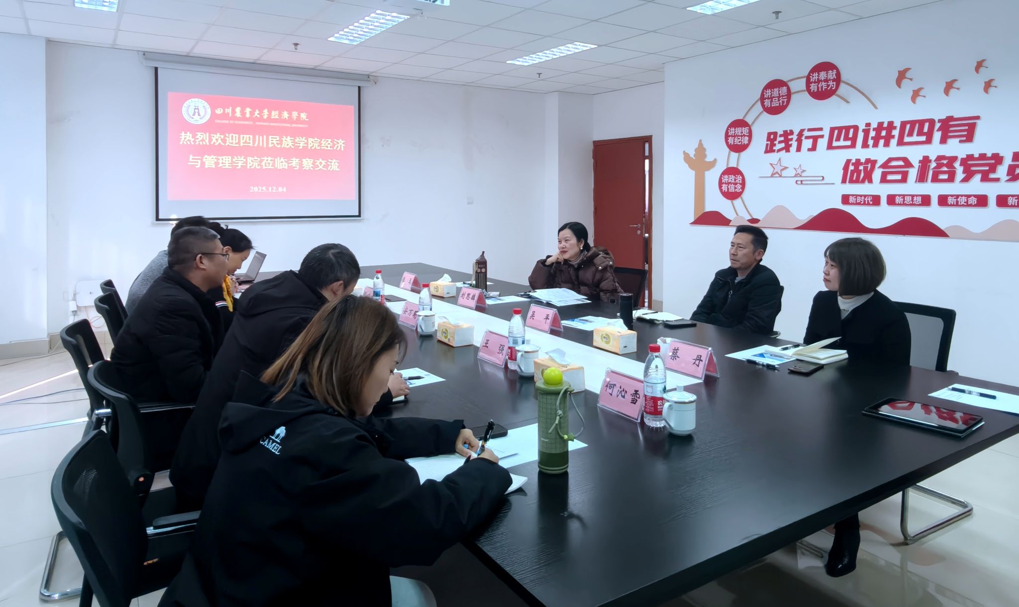 2025年12月4日,四川民族学院经济与管理学院党委书记安万明率队访问我院,就党建与事业发展深度融合、学科专业建设、人才培养等议题开展座谈交流。我院党委书记刘思麟、副院长吴平及相关科室负责人出席交流活动。