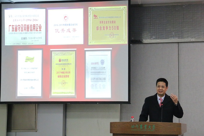 “维业”奖助学基金捐赠单位深圳市维业装饰集团股份有限公司董事长张汉清先生,建平奖学金捐赠者我院95级校友陈建平先生还亲临学院表彰会现场为获奖学生颁奖。张汉清先生还以自己20多年的创业历程鼓励同学们要勇于追求梦想、敢于拼搏,不辜负青年时期的热血与干劲。