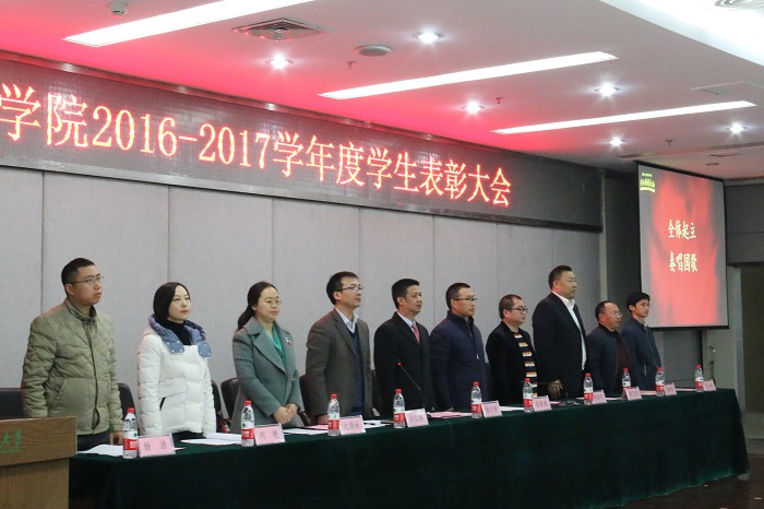 12月11日,学院2016—2017学年度学生表彰大会在图书馆报告厅举行。学院党委书记漆雁斌、党委副书记何仁辉、教代会主席李阳明、各系室主任、优秀班集体班主任代表以及200余名师生代表出席了大会,大会由党委办公室主任蔡丹主持。同时,学院特邀“维业”奖助学基金捐赠单位,深圳市维业装饰集团股份有限公司董事长,我院客座教授、学生校外就业创业导师张汉清先生,建平奖学金捐赠者、我院95级校友陈建平先生作为嘉宾出席表彰大会。