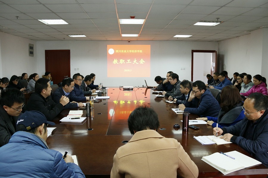 会上,院长蒋远胜分析了学院在新学年的发展优势和面临的机遇与挑战。他指出,面对党的十九大部署的“乡村振兴战略”和高考招生制度改革的新机遇新挑战,经济学院的发展优势有三点:一是团结一心、奋发有为的学院文化;二是受到学生追捧和社会认可的本科专业;三是走在学校前端的国际化办学。同时,学院还存在应用经济学一级学科点申报尚未成功、教师队伍年龄结构失衡等短板。全院教职工必须振奋精神、继往开来,团结一心、继续奋进,开创经济学院新时代的新辉煌!