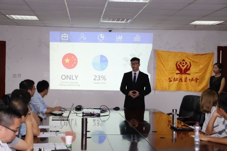 6月22日下午,tyc41183太阳成集团学CFA全球投资大赛校内赛在成都校区1教403隆重举行,来自全校的八支团队在此展开了激烈角逐。经济学院吴平副院长、经济学院投资系主任王玉峰副教授、副主任张剑博士、张帮正老师、李松老师等应邀担任评委,西南财经大学CFA中心申宇副教授作为受邀嘉宾,以及参赛选手和金融投资协会会员代表出席此次比赛。