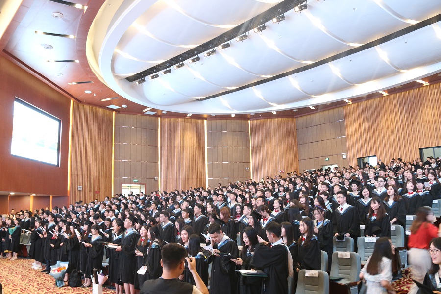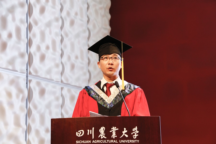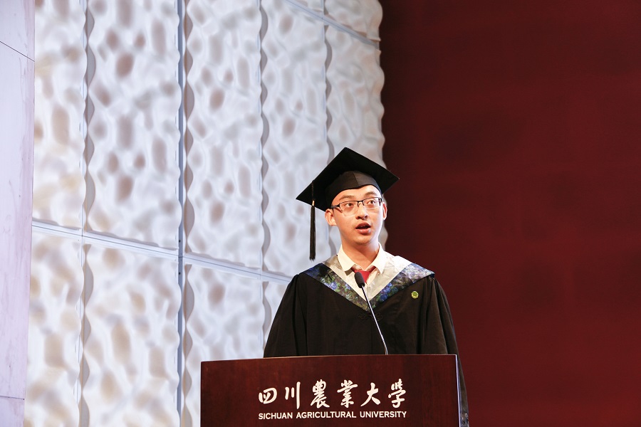 毕业生代表沈栩航表达了对大学有温度的四年生活的怀念,代表2018届本科毕业生感谢给予学生深情嘱托和笃定信任的老师们,感谢哺育陪伴自己一起成长的各位家长。“这些平凡但不平庸的日子教会了我们分析与思考、合作与竞争,更教会了我们超越与突破,这些努力将化作我们脑海中永恒的记忆,也必将成为我们生命中最宝贵的财富。我们虽然带不走川农的一砖一瓦,但前行的路上我们行囊满满;我们虽然怀念川农的一草一木,但逐梦路上我们勇往直前。作为川农的经院人,我们要把川农大精神刻在脑海,把经世济民铭记心间,力争与时代脉搏共振、与祖国发展同心!”道出了全体2018届本科毕业生的共同心声。