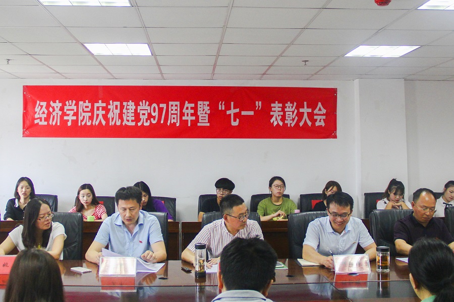 6月28日下午3点,经济学院在一教403会议室隆重庆祝建党97周年,并召开“七一”表彰座谈会。学院党委书记漆雁斌,党委副书记何仁辉,党委委员、副院长吴平,党委委员、教代会主席、工会副主席李阳明,党委办、行政办和团委负责人,各师生党支部书记以及受表彰的先进集体和先进个人代表40余人出席会议。会议由何仁辉主持。