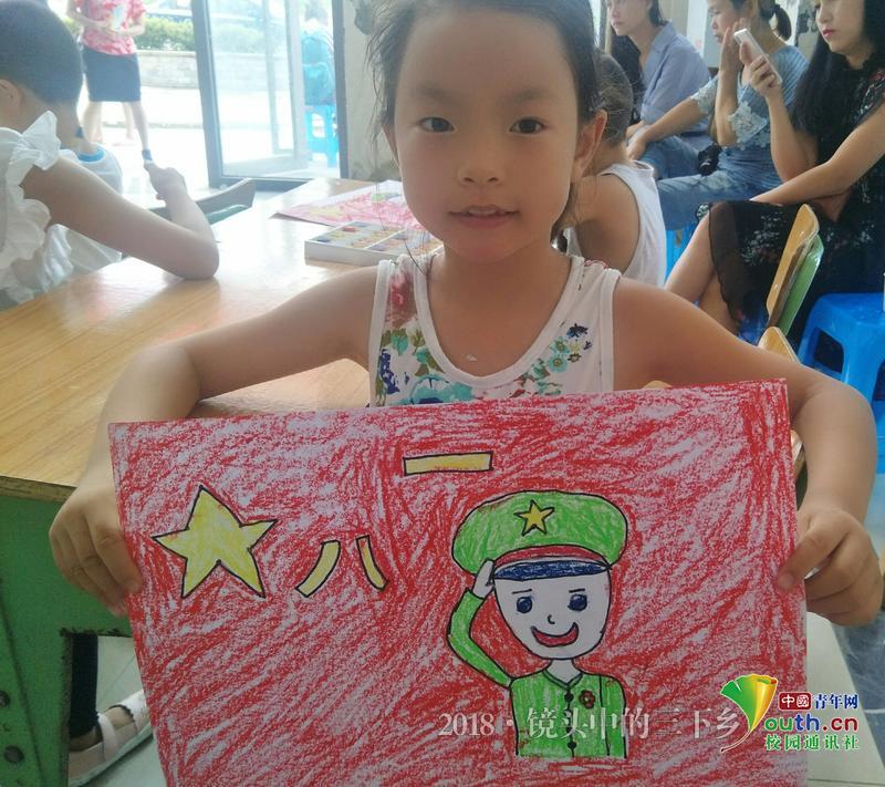 因为今天是建军节,为了纪念这特别的一天,表达对军人的崇高敬意,所以社区志愿者将组织孩子们画出大家心目中最可爱的人—军人。话音刚落,孩子们就七嘴八舌地讨论起来了。“我爷爷以前是当兵的,他立过战功”“我以后也要去当兵,我是最勇敢的”“我画画特别厉害,我画的军人叔叔一定会是最帅的”……大家的讨论热情越发高涨,你一句我一句的好生激烈,感觉活动室外的高温已经透过门窗蔓延入内。