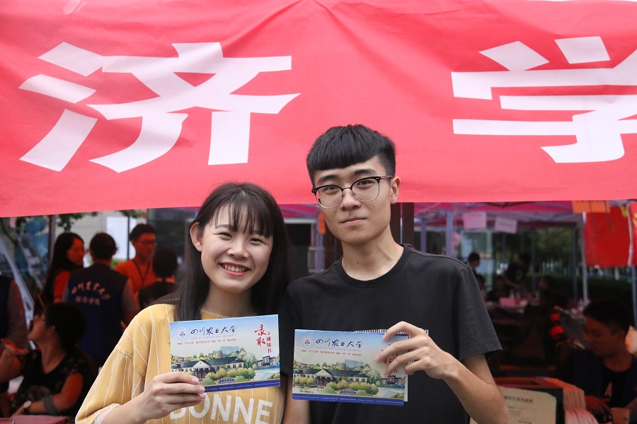 淅沥秋雨中经济学院迎来了三对特殊的新生,他们用亲情、爱情和友情诠释着不一样的川农情缘。