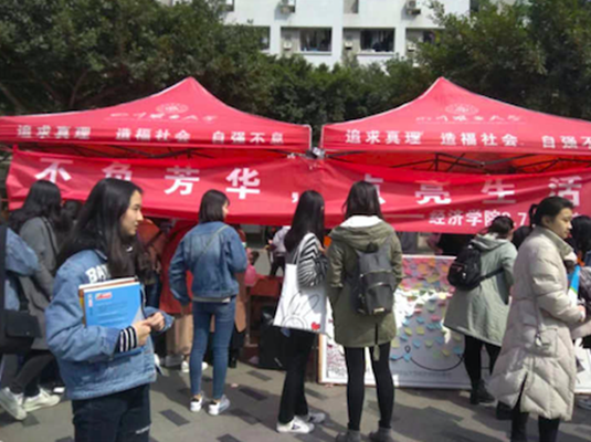 为了引导女大学生提升个人修养与内涵,早日接触职场社交礼仪及职场形象塑造,2018年3月7日,由经济学院自律部承办的3.7女生节活动于4B-302与成都校区生活小广场顺利举行。此次活动包括《职场社交礼仪及形象塑造》讲座、心语心愿、幸运圈圈圈等。