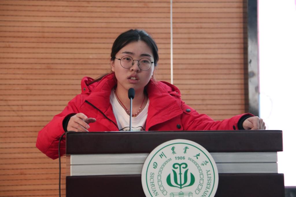 张椿丹同志重点分享了关于实践工作方面的经验以及学术竞赛方面的经验。还给同学们分享了很多有用的微信公众号。在她看来,随波逐流很容易让人迷失方向,但坚持自我却让我们向目标不断靠近。大学里难免会留下遗憾,但正是这些遗憾,才让我们的所得变得更加珍贵。她也希望大家能够努力享受大学生活,尽全力的不要遗憾,想要放弃一件事情的时候就坚持一下,跨过某个节点,苦难也许就迎刃而解。