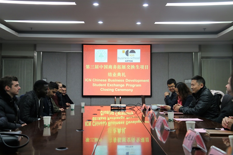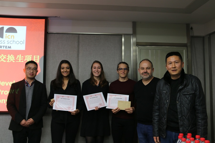 12月20日,经济学院举行第三届中国商务拓展交换生结业典礼。教务处副处长刘涛,经济学院副院长吴平,法国南锡高等商学院项目主任Gérald Duffing,学院国际合作项目负责人沈倩岭及相关授课老师,项目全体学生参加此次典礼。典礼由沈倩岭主持。