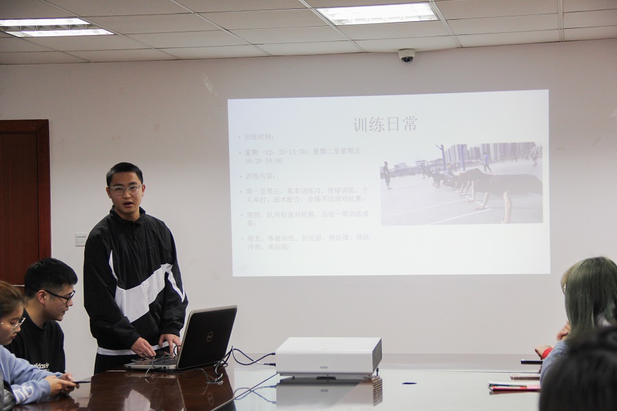 兴趣特长团队下设体育特长队、艺术团及辩论队三大团队。会议由体育队总队长芦猛作了总发言。他表示,体育队的成立与发展离不开学院的素拓基金支持和同学们的热情提议。队内执行严格有序的规章制度和考核制度,确保训练的正常开展。乒乓球队、女子篮球队、羽毛球队等十支分队的队长或分队代表就过去一年各分队的训练制度、参赛及获奖情况作了汇报,并对今年分队的发展目标做出了详细规划。