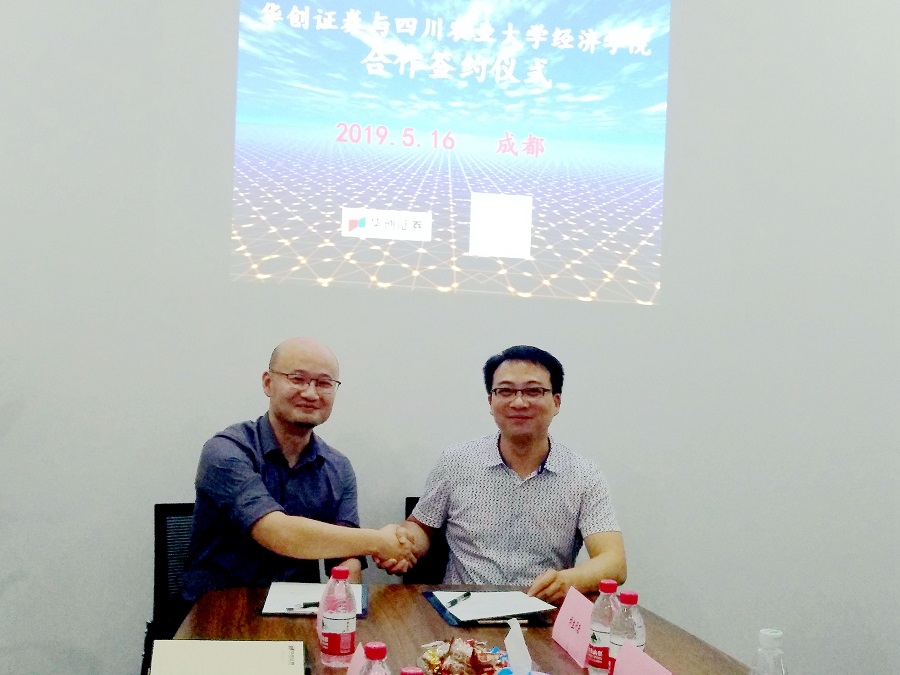 5月16日下午,学院党委副书记何仁辉、党委办公室主任蔡丹、就业秘书陈郡雯等一行赴华创证券成都青羊大道营业部开展交流合作,与该单位签订了教学实习、社会(就业)实践基地协议。营业部总经理姚烜及有关负责人出席座谈。