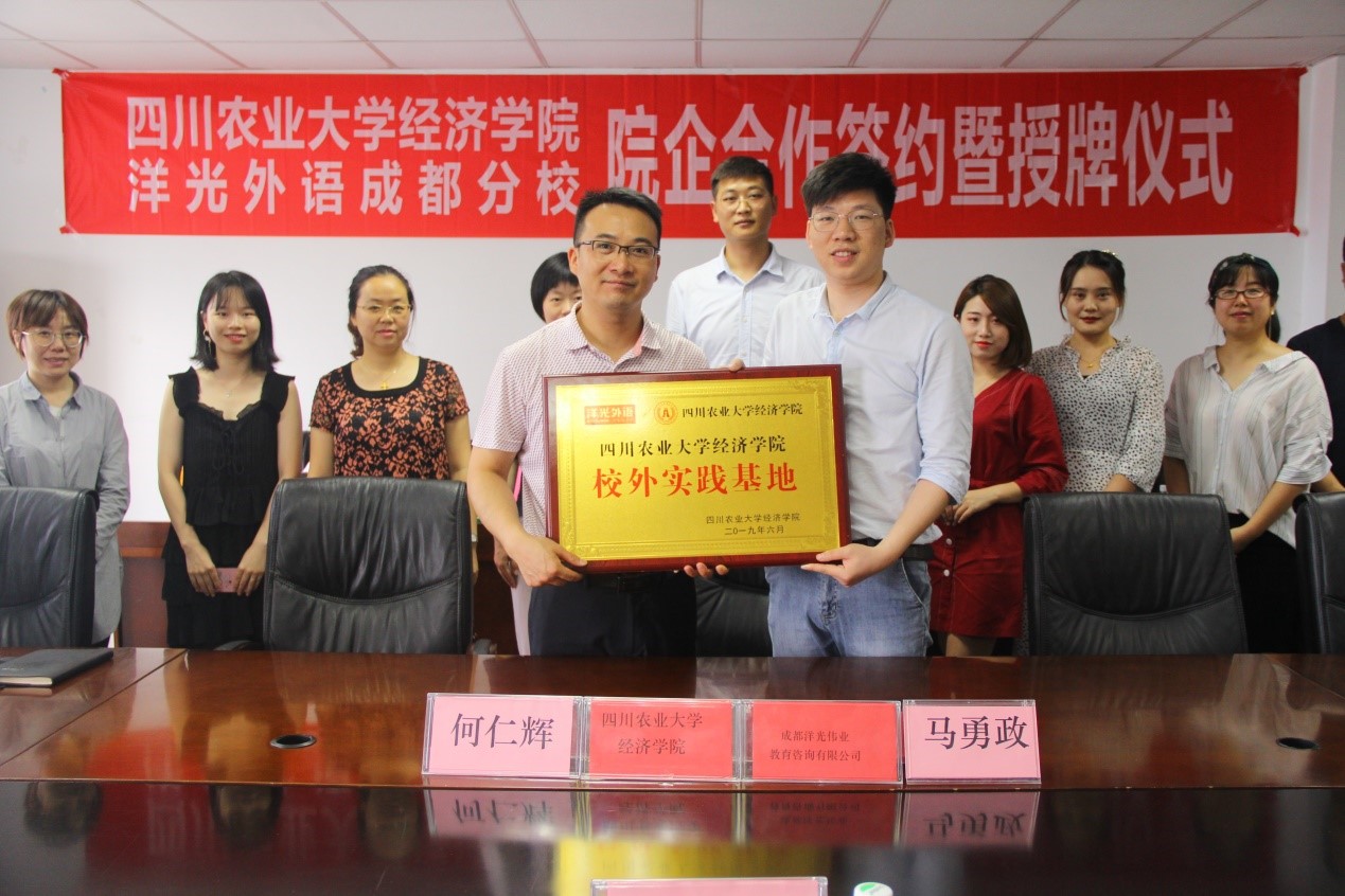 6月27日,经济学院与成都洋光伟业教育咨询有限公司院企合作签约仪式在一教403举行。成都洋光伟业教育校长马勇政一行6人,经济学院党委副书记、纪委书记何仁辉,国际经济与贸易系主任沈倩岭、副系主任宋涛,全体辅导员以及学生干部代表出席仪式。仪式由学院党委办徐秋梅主持。