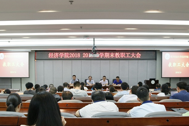 会上,院长蒋远胜从5个方面回顾了本学期工作。一是师资队伍进一步壮大。本学期学院新进了5位老师,壮大了学院师资队伍,提升了学院教学、科研能力;10人次老师参与高等学校国家级实验教学示范中心联席会议等培训;3人参加井研县、雅安市国资委等挂职锻炼;4人入选“天府万人计划人选”。二是本科教学成效显著。今年有556名本科生成功授位,授位率达99.6%;经济学进入学校一流本科专业建设,金融学进入省级一流本科专业建设;4名老师分别获学校教学质量奖第一名、第二名,1名老师获全国性讲课比赛三等奖;三是研究生培养质量进一步提升。今年87名硕士研究生和3名博士研究生顺利毕业,3篇论文获评校级优秀论文。四是科研工作取得新突破。今年学院获得4项国家社科基金项目立项,创我院历史新高;承担了6项横向课题。五是国际化办学稳步推进。我院5名同学入选公派留学项目,接收法国交换生10余名,中外合作办学全英文班将于下学期正式开班。基于本学期奠定的基础和取得的成绩,蒋远胜对假期和下学期工作作出安排,强调各系室要召开教研会议,各学科点要加强规范性建设,科学研究和社会服务要进一步推进,新进老师要迅速融入教学团队,积极备课,进入状态。