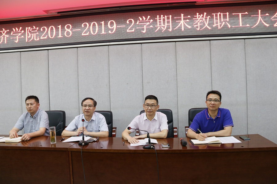 7月10日下午,经济学院在1教309召开本学期末全院教职工大会,总结回顾本学期工作,凝聚共识,振奋精神,统筹部署假期和下学期工作。会议由学院党委书记漆雁斌主持,学院全体教职工参加了会议。