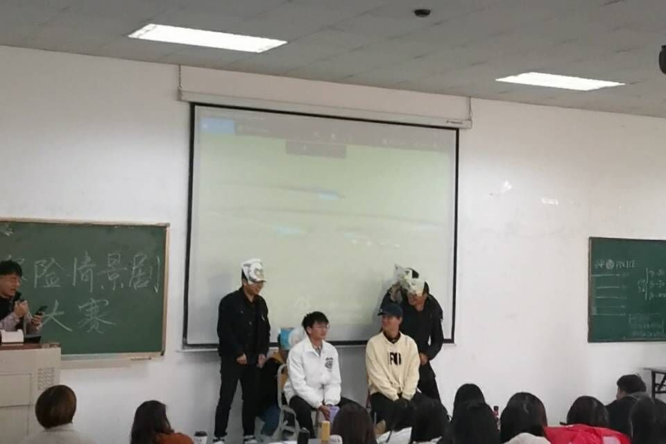 一等奖《保险的诱惑》改编自热门电视剧《回家的诱惑》,在原有经典人物角色洪世贤、林品如、艾莉的基础上增加了如保险公司、律师、警察等第三方角色,将保险知识完美融入整个故事,获得师生一致好评。