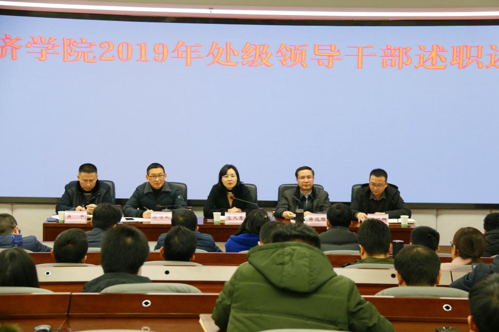 12月25日下午,学院2019年度处级领导干部述责述廉述党建大会在1教309会议室召开。学校党委书记庄天慧莅临指导,学院全体院领导和教职工出席会议,会议由学院党委书记漆雁斌主持。