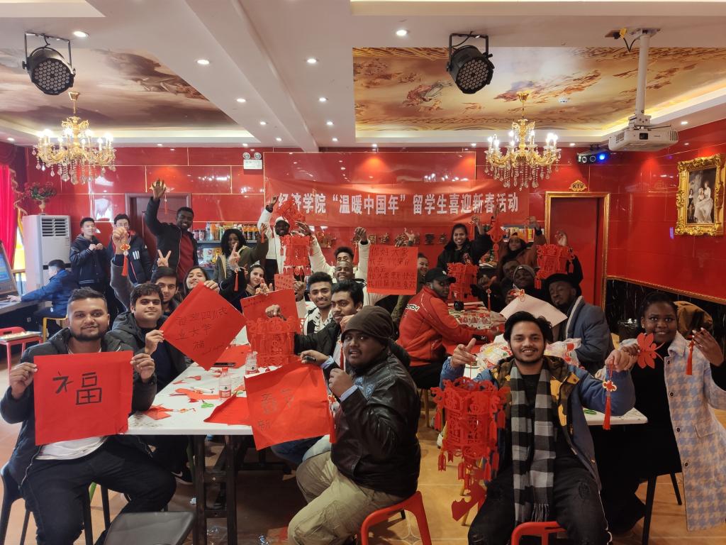经济学院院长蒋远胜称,今年是经济学院招收“一带一路”留学生的第一年,学院为留学生组织新年活动,让春节留校的留学生在中国也能体味到家的感觉,体验中国春节的热闹和浓厚的节日气氛。同时,通过春节民俗,帮助“一带一路”留学生加深对中华文化的了解,更好地认识中国、读懂中国、爱上中国,成为知华友华的中外友好交流使者。