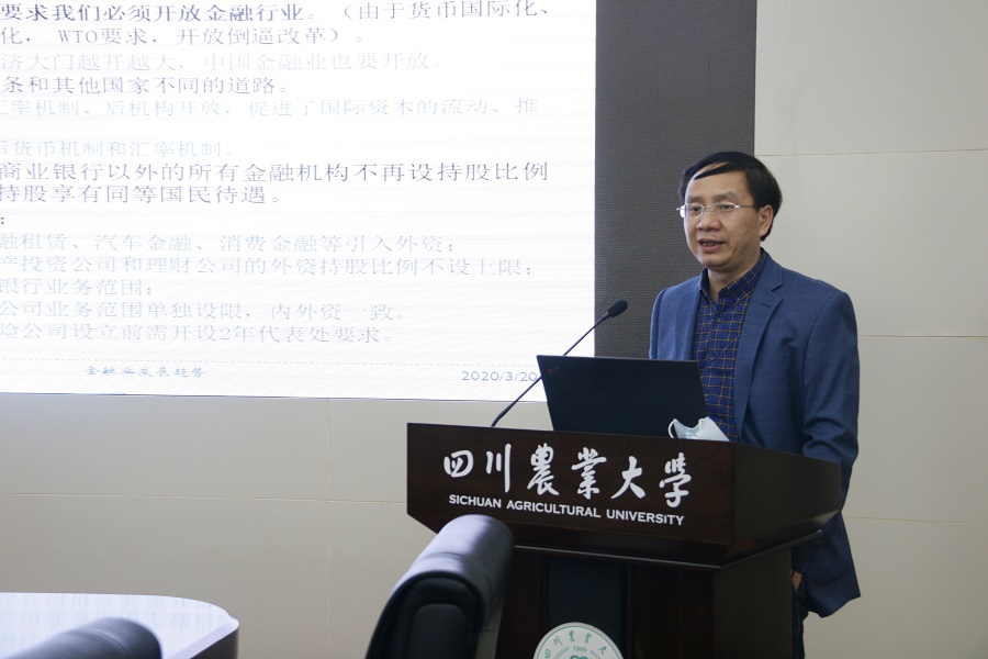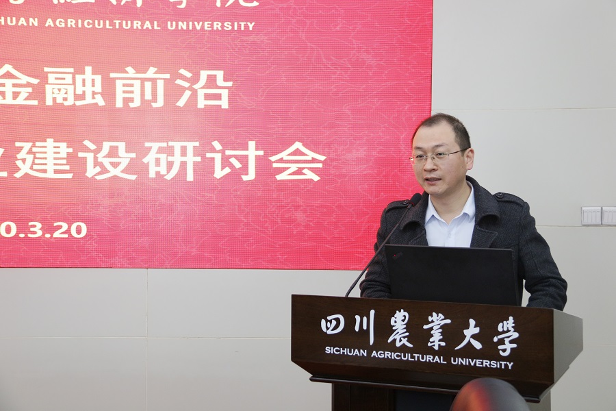蒋远胜首先就“金融学科的发展前沿与趋势”做了专题发言。他指出,伴随着信息时代的飞速发展和我国经济向高质量发展转型,传统金融学科发展面临挑战,经济学院应结合自身优势,积极应对挑战和抓住机遇。在金融科技化、信息化发展的趋势下,未来要加强金融与计算机学科的交叉融合,突出农村金融与金融科技特色,力争把我校金融学专业建成特色鲜明、西南一流“新商科”示范性本科专业。