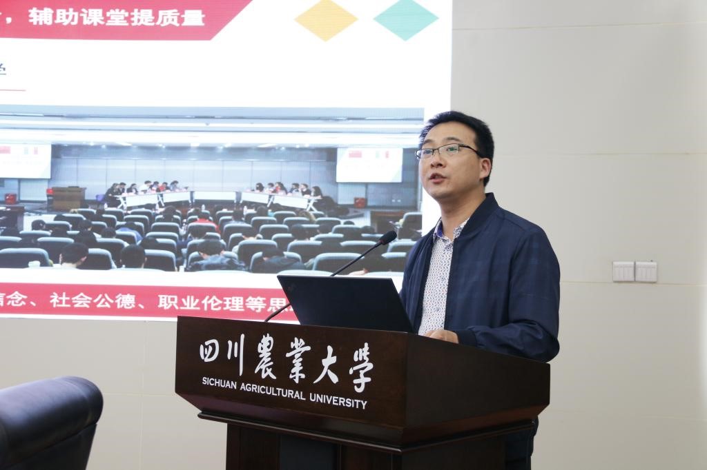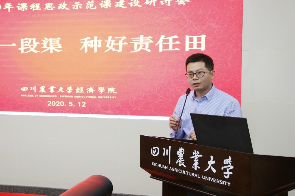 实验中心主任、《项目评估与管理》示范课负责人张剑老师阐述了如何将“三农”情怀、抗击新冠疫情、“绿水青山就是金山银山”、“治蜀兴川”等9个思政元素巧妙融于课程。