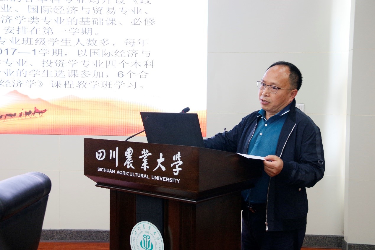 《政治经济学》课程团队成员、校教学督导员委会委员、国贸系教工党支部书记李阳明副教授介绍了如何坚持马克思主义政治经济学在经济学领域的主导地位,把思政理念元素贯穿于课程教学各章节全过程。