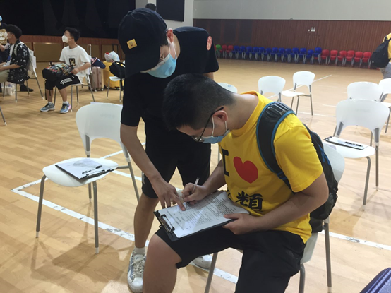 “同学您好,请出示健康码和学生证”“同学,请在后面排队间隔1米依次等待”“同学,您的返校报到已经完成,祝您在学校里生活愉快,学习进步”在志愿者的指引下,返校同学依次通过核验健康码、填写风险评估表、提交承诺书、登记返校信息等流程,极大减少了每位同学的报到滞留时间,报到工作井然有序、安全高效地进行着。