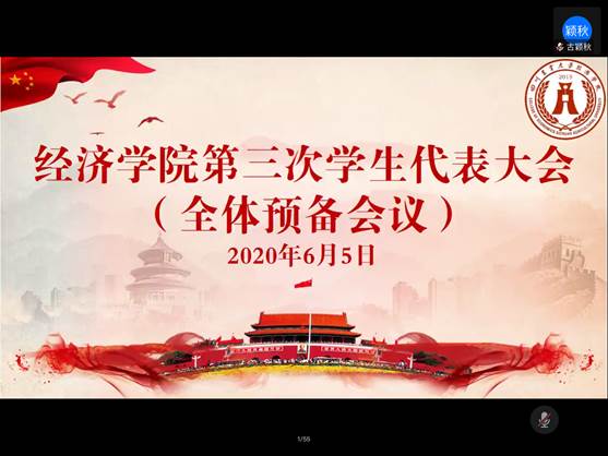 6月5日下午16:20,经济学院第三次学生代表大会顺利召开。受疫情影响本次大会于线上进行,出席会议的嘉宾有经济学院党委副书记何仁辉老师、学院党委办公室主任蔡丹老师、学院团委书记兼党委办公室副主任钟贝老师、党委办公室徐秋梅老师、罗利娟老师以及学生党支部代表。学校第三届学生代表、第五届学生团体联合会主席团及主要学生干部、第六届学生团体联合会主席团候选人等共计170余人作为参会人员参加本次大会。