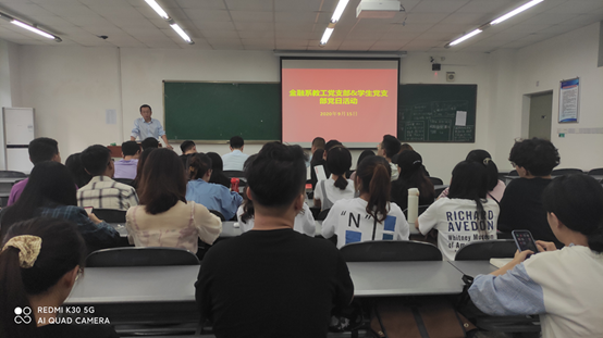 2020年9月15日,为深入学习习近平新时代中国特色社会主义思想,贯彻落实党的路线方针和政策,加强疫情期间教学任务与学生工作的有力开展,经济学院金融系教工党支部暨学生党支部党日活动于4C208圆满召开,金融系教工党支部全体同志及学生党支部学生代表参与本次活动。