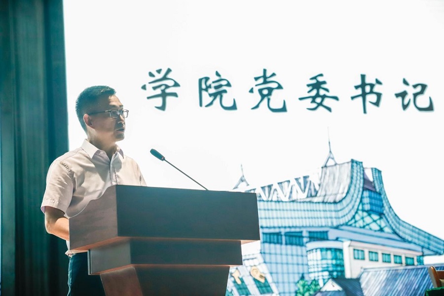 学院党委书记漆雁斌教授首先代表经济学院全体师生对2020级的396名新同学表达了热烈的祝贺和欢迎,对经济学院的发展历史、师资力量、办学规模、人才培养、科学研究、社会服务、国际合作和文化传承等基本情况作介绍。漆雁斌书记阐述了大学的含义、宗旨与初心。他指出,在中国特色社会主义进入了新时代的当下,经济学人必大有所为,并以此提出三点希望:一是明德厚德,理想远大;二是善思博学,经世济民;三是强身健体,磨练意志。最后,漆雁斌书记祝愿作为强国一代、复兴一代的2020级新同学,能乘新时代的东风,在祖国的万里长空放飞自己的梦想,用奋进之笔、奋进之举、奋进之功谱写新时代最壮美的青春之歌。