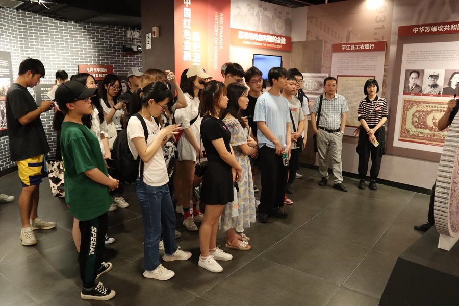 在讲解员的解说中,同学们参观了“金融是国家核心竞争力”、“中国金融的红色基因”“中国红色金融历史沿革”“中国革命金融的重要里程碑”“中国革命金融的要素与贡献”和“新时代金融创新”等展厅。大家边参观边讨论,不时向讲解员提问,积极地参与博物馆内的趣味体验活动,离金融更进一步。