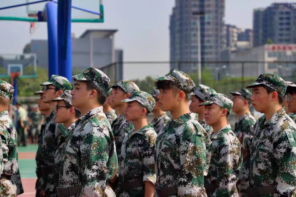 挺拔的军姿,响亮的口号,他们用平凡的动作练习诠释非凡的果敢坚毅。站军姿,走正步,看似简单的动作却需要不断地练习。为强化肌肉记忆,在每天训练正式开始之前,新生们都会进行半个小时的基准训练,训练每一个动作的精确性,长时间的坚持经常会使得肌肉酸痛不已。日常训练中,教官们也会对每一个训练动作严加要求,力求精准,在反复地教习训练之后更是会逐一指导,精准摸排,重复练习一个动作一下午的情况对于新生们来说早已习以为常。“军训确实很累,每一次抬腿,每一次挥手,都有着非常严格的要求。但经过了团长的讲话和训导,我懂得了军训的意义,坚定要向屹然不动,目光坚定的军人学习!”经济2021的陈俊吉对此深有体会。