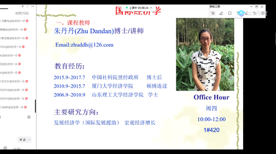 图为经济学院朱丹丹老师进行线上授课