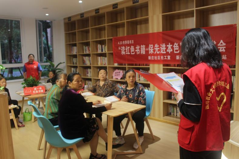 2023年4月20日早上,四川农业大学经济学院青年志愿者协会与永宁街道新时代文明实践所以及新庄社区联合举办的党的二十大精神主题宣讲活动——“以青春之名,献礼二十大”读书会暨“读红色书籍·保先进本色”青年读书会在永宁街道新时代文明实践所启动。本次活动经济学院青年志愿者协会共有六位志愿者参与到组织中,共有超20名社区居民参与到读书会中。
