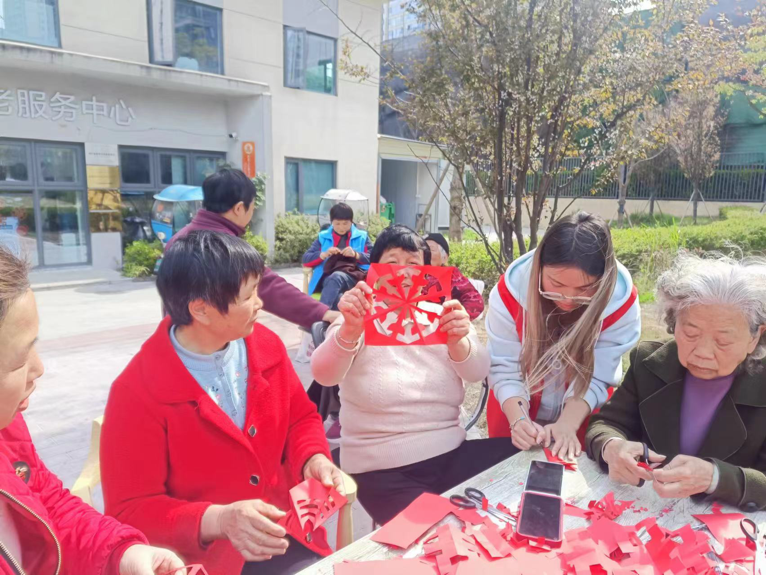 活动当天下午,志愿者们协助社区精心准备剪纸材料和工具,向老人们介绍了剪纸的起源、发展和艺术特点,以及相关的剪纸技巧,激发了老人们对剪纸活动的浓厚兴趣。在志愿者的指导下,老人们纷纷拿起剪刀和彩纸,开始尝试剪纸。