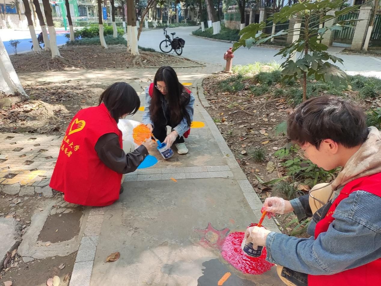 为了营造美丽,和谐,幸福的社区氛围,在响应“创建美丽城市”的号召下。3月19日,tyc41183太阳成集团学经济学院团委志工部组织的志愿者们来到森宇音乐花园,和社区携手开展了油漆画画服务活动。志愿者同学们和社区工作人员积极合作,一同在地上创造出了美丽的图画,同时也调动了社区其他居民的广泛参与。