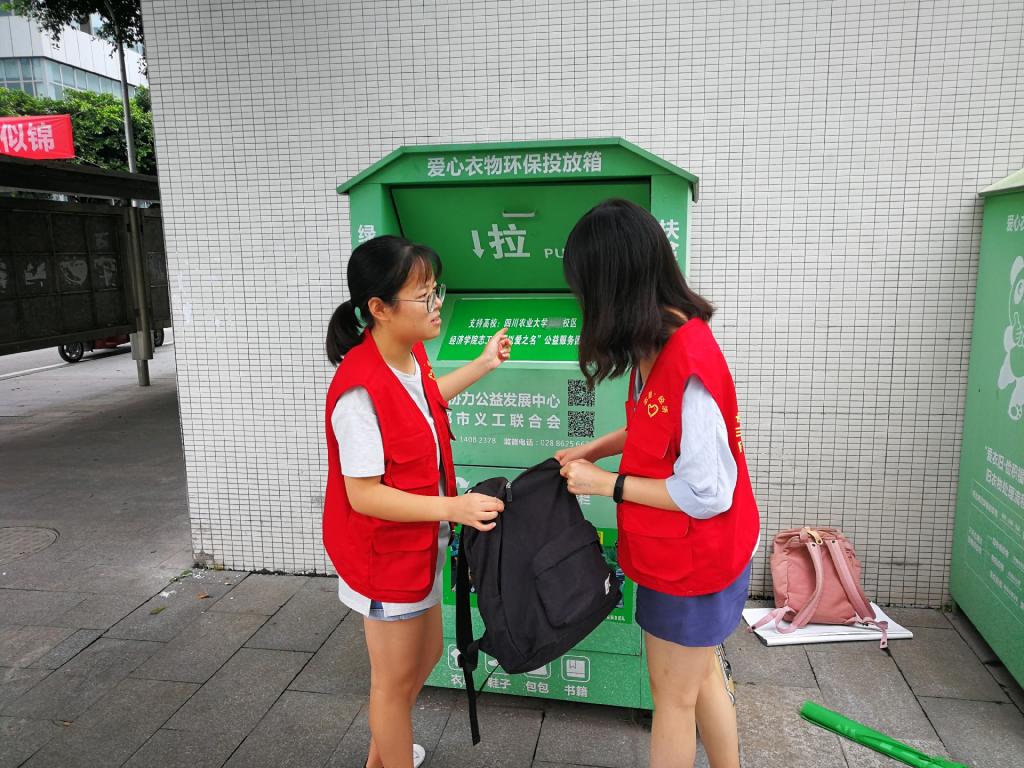 此次活动旨在通过志愿者们收集同学们的捐赠物,并交由成都市义工联合会一并捐赠给偏远山区的小朋友们,实现旧衣旧书的二次利用。自活动开展以来,同学们踊跃参与,二公寓旁的旧衣回收箱被塞的满满当当。捐赠现场涌动着浓浓的爱心,温暖无限,大家都想为贫困地区的孩子贡献着自己的一份力量。