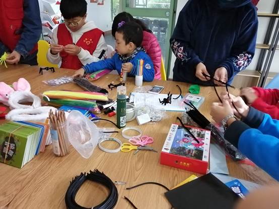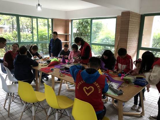 在上午的手工制作活动中,志愿者们帮助小朋友和家长们一起制作活动所需要的装饰品。这些装饰品在父母和孩子的合作下变得栩栩如生。最后,志愿者们把小朋友们的作品、彩灯和气球装饰在房间内。