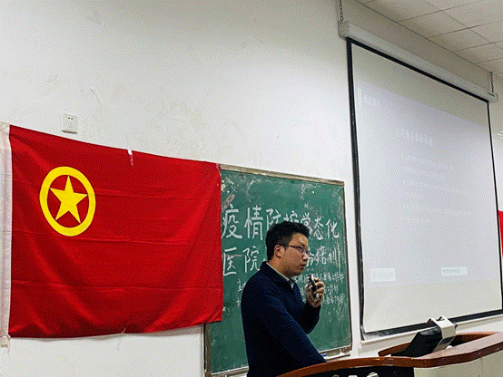 随后五医院团委委员龙义添医师为同学们带来了冬季传染病的自我防护和防疫基本知识。龙医师深入浅出的讲解及风趣幽默的话语引得同学们掌声不断,接着用一个科普类的小视频让与会者对疫情的传播与防控有了进一步了解,解决了同学们的诸多疑惑。