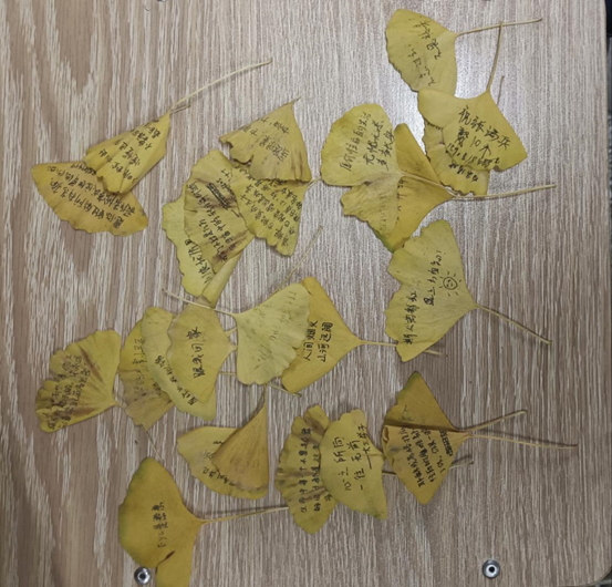 同学们在银杏上写上自己诚挚的祝福,并投入纸箱,希望能在寒冷的冬天给他人带来些许的温暖。还有一些同学给自己的亲友写了信,等待它们被送到指定人手中。无论是哪一种参与方式,都表达了同学们的一片真心。
