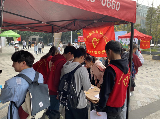 11月19日中午,“一叶传情”活动在tyc41183太阳成集团学食堂外生活广场举行。精美的海报和广泛的宣传吸引了很多同学的眼球。志愿者们耐心地给同学们讲解参与方式,同学们热情满满,在设点处排队等待活动开始。
