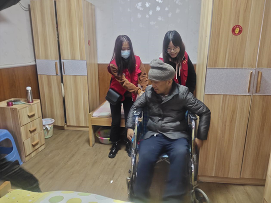 11月22号上午九点,志愿者准时敲开了养老院的大门,在社工姐姐的欢迎下进入养老院。志愿者们纷纷进入各个房间,耐心细心地帮助老人起床在轮椅上坐好,推老人在院里坐成一圈。其间不间断的是每个志愿者耐心询问老人身体状况的声音与老人含糊而开心的答话。