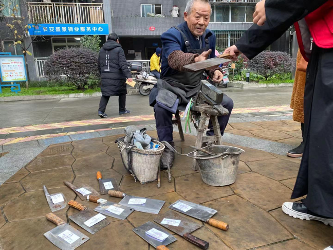 寒冷的冬日早晨,成员们到达长安路社区盛景小区,这里的社区氛围一直友爱和谐,邻里们感情深厚。志愿者们认真听从社工们的指导,提前布置会场,共同为顺利开展活动出谋划策,随后在北风中迎接社区居民的到来。这次活动内容包含了“友爱磨刀”、“健康服务”、“义卖活动”等。